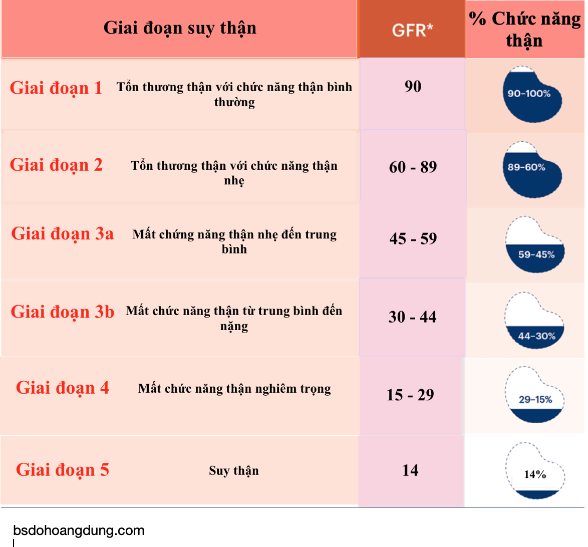 Các giai đoạn của bệnh thận mãn tính (CKD)