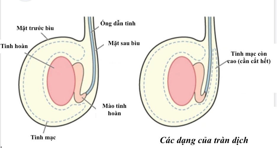 1. Tràn dịch tinh mạc bẩm sinh: Điều này xảy ra khi ống phúc tinh mạc thông với khoang phúc mạc. Sự thông thương này rất nhỏ đủ cho phép dịch màng bụng di chuyển